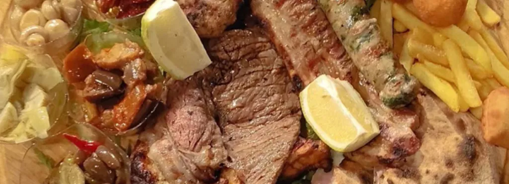 fettina di vitello, polpetta, puntina e salsiccia con insalata mista
